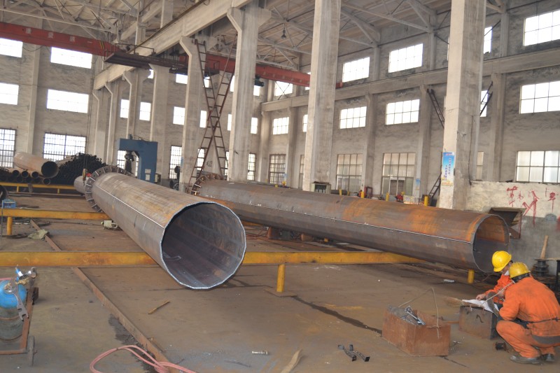 Trụ đa giác giàn đèn nâng hạ đang được sản xuất tại xưởng
