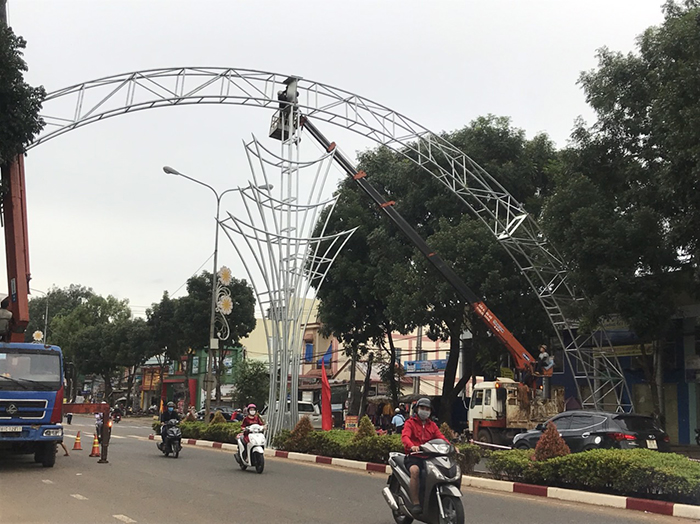 Cổng chào được mạ kẽm và vận chuyển về công trình