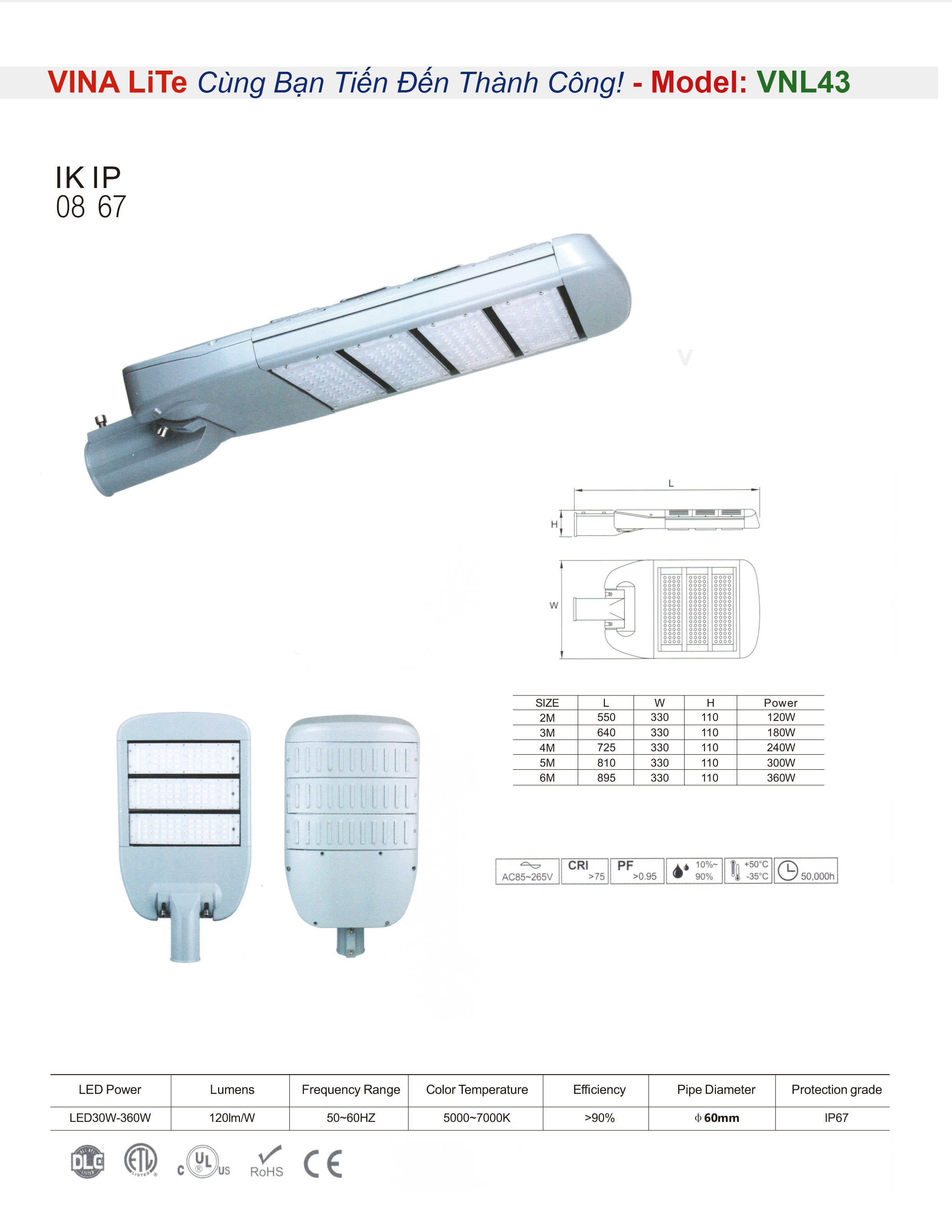 Tuổi thọ cao: Đèn LED đường phố VINA LiTe phân phối có tuổi thọ cao và không cần được thay thế thường xuyên, giúp giảm chi phí bảo trì và sửa chữa.