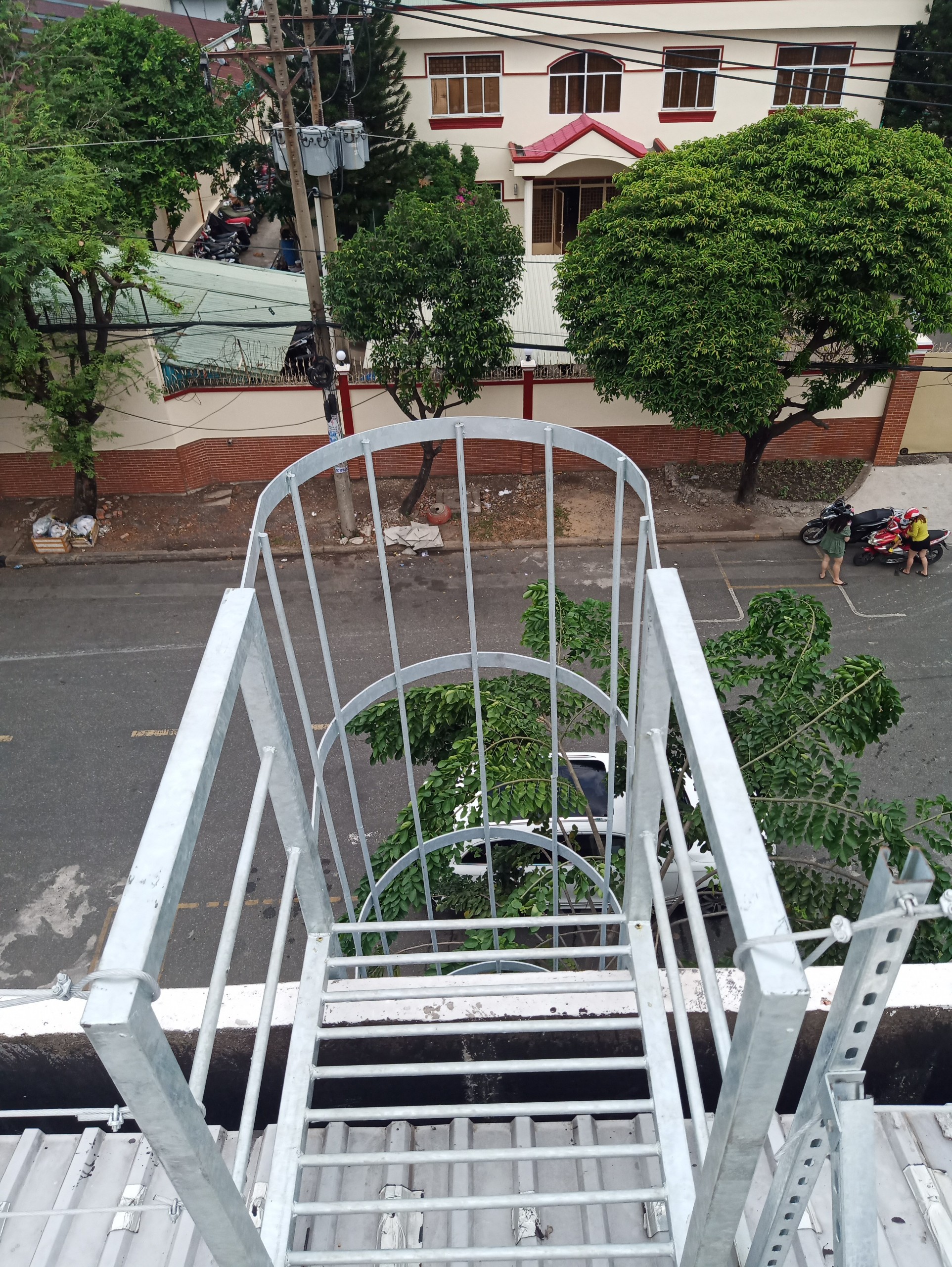 Thang Thoát Hiểm đang được vệ sinh sau khi mạ nhúng kẽm nóng