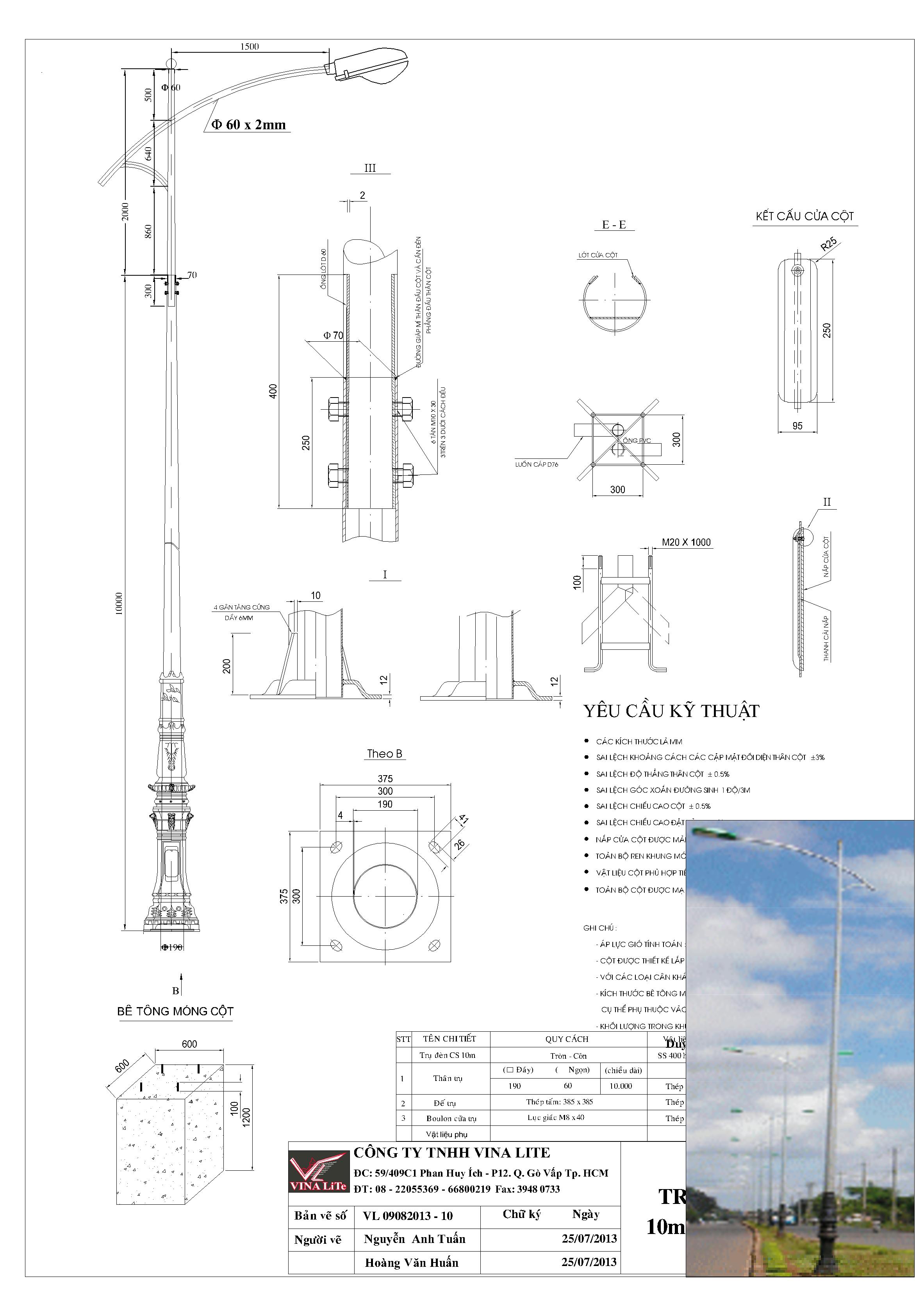 Trụ Đèn sau khi sản xuất phù hợp với các yêu cầu của tiêu chuẩn JIS G3101 (SS400) được kiểm tra lại bởi Quatest III.